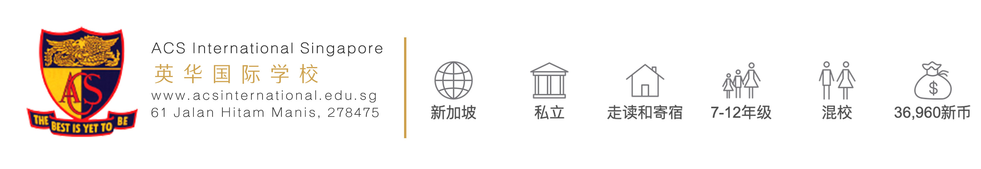 英华国际学校(ACS)位于新加坡的一所圣公会私立学校。我们以提供高素质的、以人为本的、全面及均衡发展的教育为荣。我校学生在逐步发现自我,发掘自己的潜能的同时,也开拓视野、建立人脉。